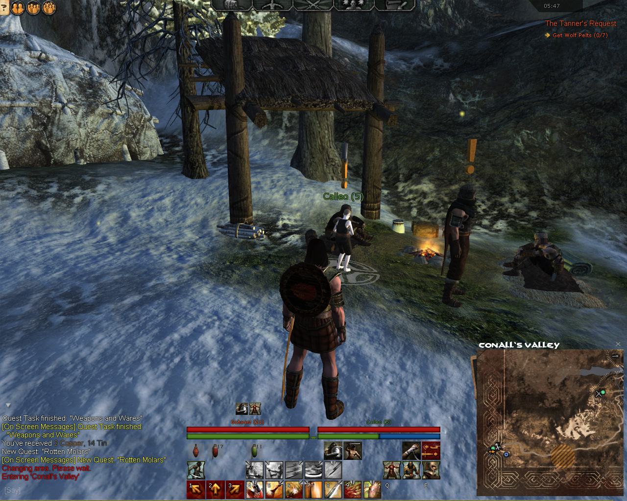 村外れには難民キャンプがあり,そこにいるCroissから現在のConarch Villageの状況を聞くと,北方からVanirという種族が大挙して攻め寄せてきているため,隣のConall's Valleyは戦場と化しているらしい。CroissはこのVanirに恨み骨髄らしく,奴らを倒してその歯を集めて持ってきてくれというクエストをくれる。歯なんかなんに使うのかと思いきや,それでお守りを作るんだとか。