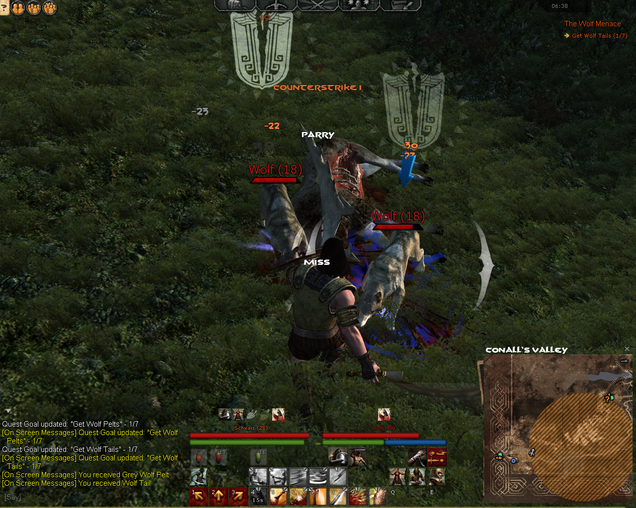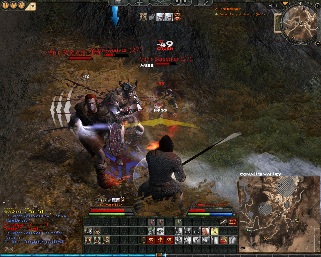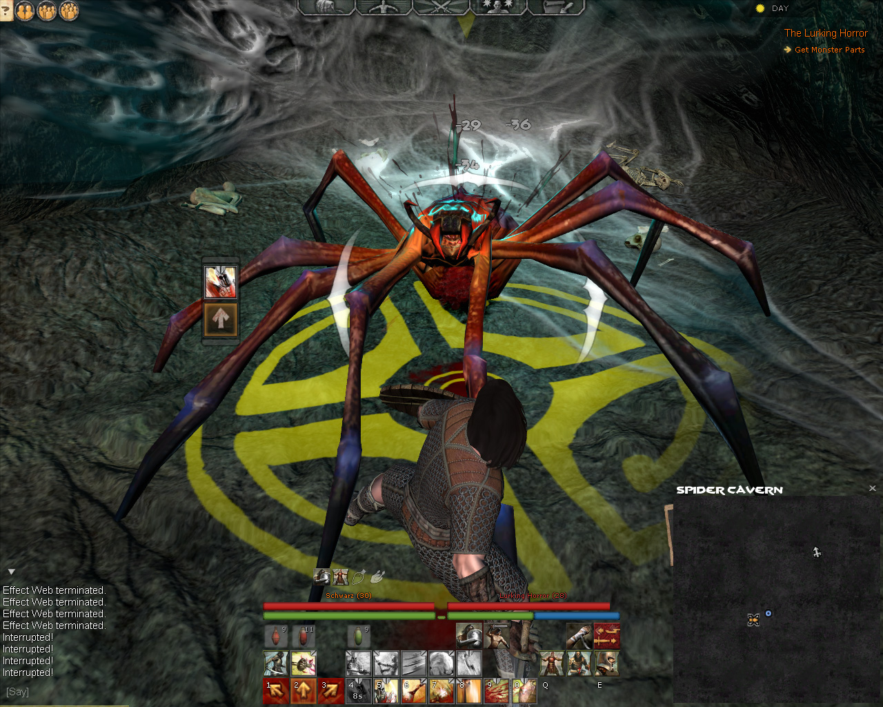 Conall's Valleyのクエストの大半はVanirに関連したものだが,とあるモンスターの噂を聞きつけ,それを退治に行くというクエストもある。そのモンスターは,かなり昔からこの谷間に出没するようになり,家畜を襲っては食い殺してしまうのだそうだ。正体をいってしまえば,そのモンスターとは巨大なクモの化け物で,マップの東にある洞窟の奥に棲んでいる。