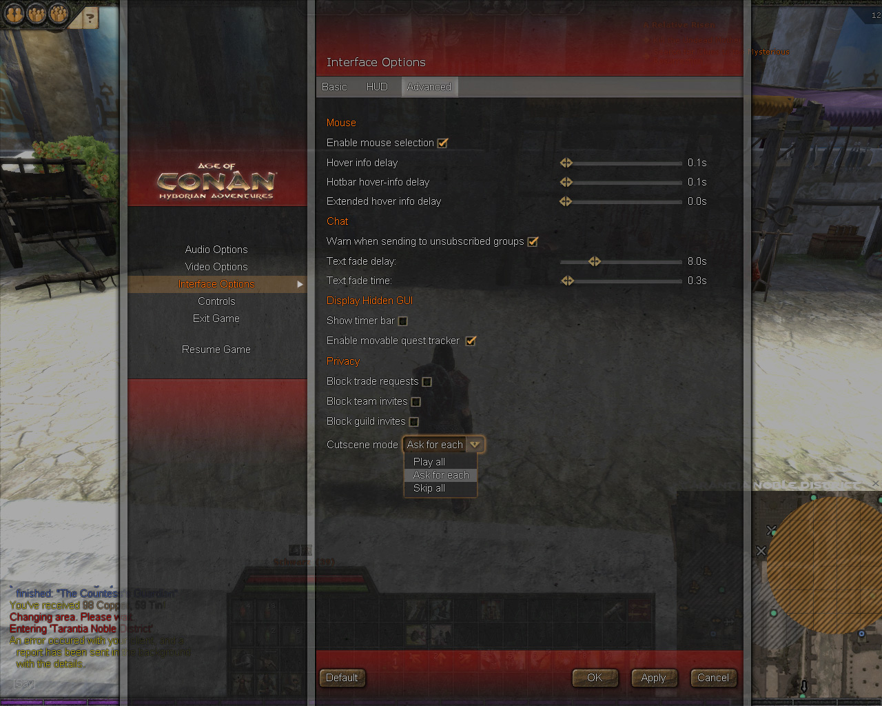 行ってみれば分かるが,アキロニアの首都Old Tarantiaは規模がかなり大きく,まさに大都市といったところだ。スティギアの首都Khemiは,こじんまりとした砂漠の都市といった雰囲気で,それぞれの都市はキンメリアが北欧バイキング風,アキロニアが古代ローマ風,スティギアがエジプト風となっている。ちなみに王様となったコナンは,Old Tarantiaの中央にある巨大な城の中に鎮座ましましているとかで,だいぶ先のDestiny Questで対面がかなうことになるらしい。