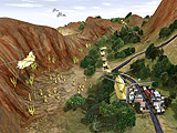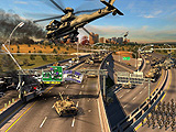 3D化されたグラフィックスは美しく,破壊によって地形も変化するなど,この手のゲームには珍しい派手な演出が随所に見られる。橋を破壊したり,爆破で大きな穴を作ったりできるし,ビルも倒壊したままの状態となる。ミッションが終了する頃には,ボコボコの大地と,がれきの山に変貌しているはずだ。