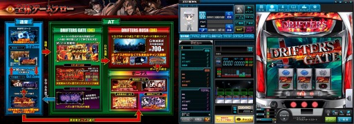 注目は獲得枚数約114枚(純増約4.9枚/G)のAT「DRIFTERS GATE[DT]」!完全自力のRUSH突入ルートでベルを揃えて超リアルボーナス集中ゾーン「DRIFTERSRUSH[DR]」へのゲートをこじ開けろ!