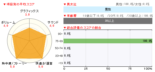 グラフィックス サウンド 快適さ/運営 熱中度/ストーリー ボリューム 3 4 5 5 4