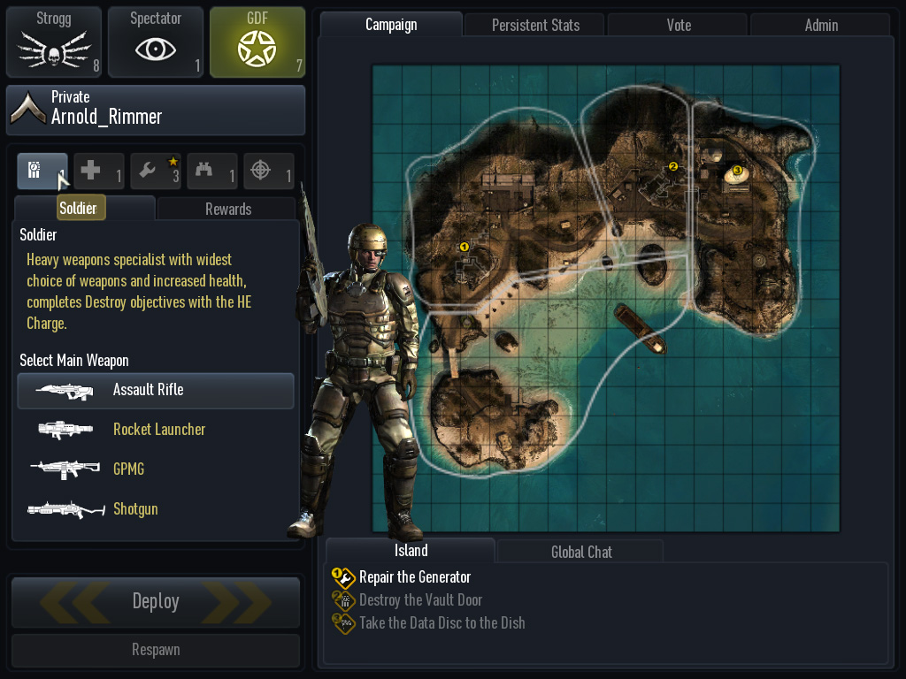 GDFのSoldierに相当するクラスだ。重火器が持て,また時限爆弾(Plasma)の設置ができる。基本はSoldierとほぼ同じであり,その火力によって敵を圧倒し,Objectiveを破壊するのが役割だ。