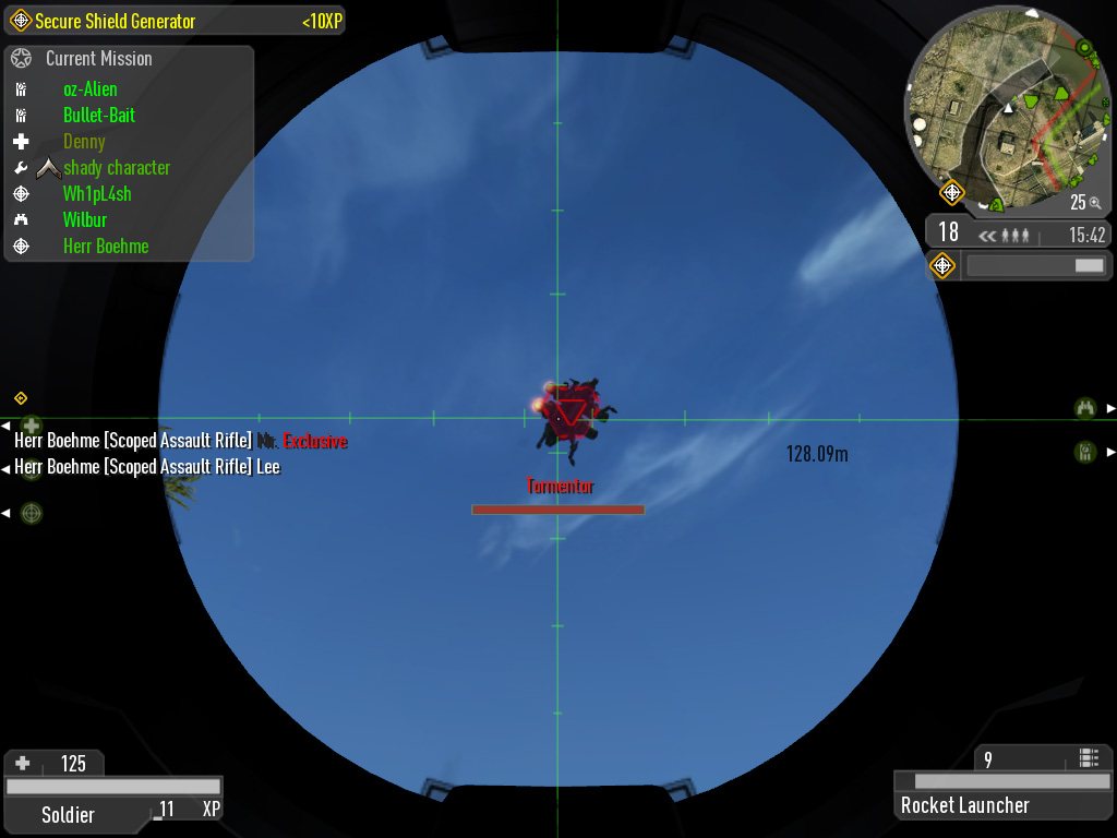 Scoped Assault Rifle:Lv.1で持てるようになる。Assault Rifleにスコープが付いた武器で,Assult Rifleよりも集弾率が高い