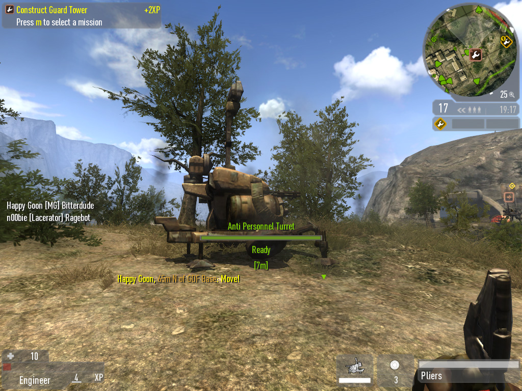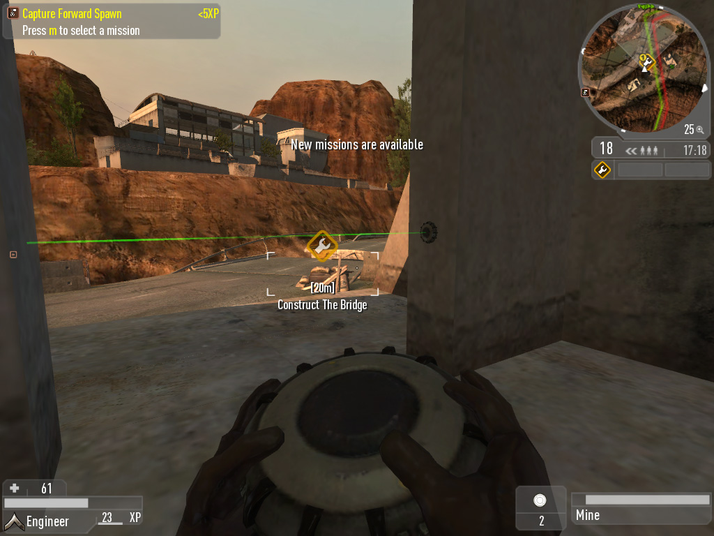 また,地雷の設置もEngineerの重要なお仕事の一つ。オブジェクトに近寄る敵を地雷で倒せるからだ。また,一度に撒ける地雷の数は3個まで。地雷はペンチでコネコネしないと有効にならないが,Lv4のEngineerはペンチ作業なしに地雷が撒ける。