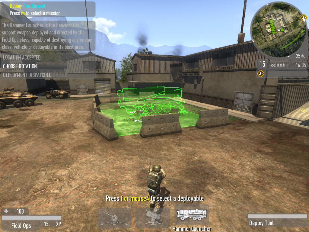 なお,Field Opsが設置できる兵器は,いずれも着弾点をField Opsが指定する必要がある。Engineerが設置できる兵器のように自動的に機能しないので注意しよう。