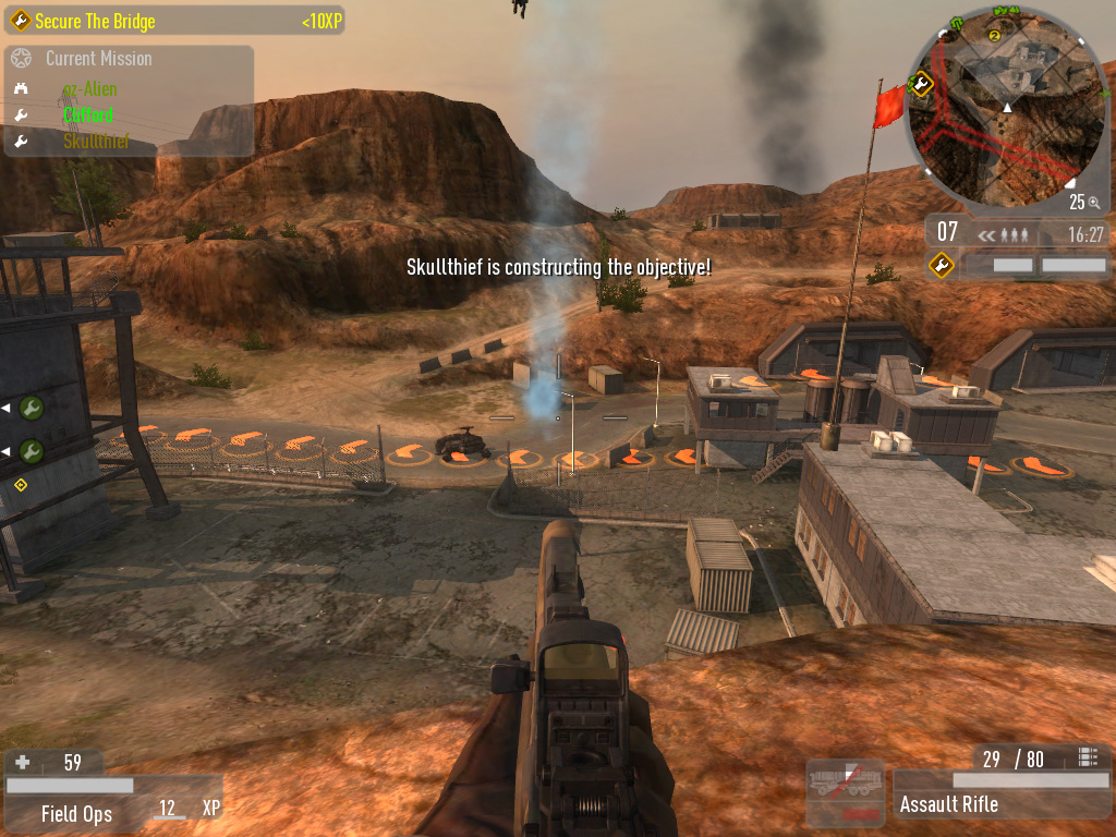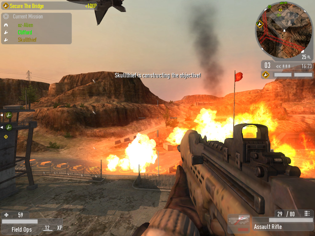 空爆の要請もField Opsの重要な仕事の一つ。Field Opsが煙幕を投げると,その煙幕を目印に味方が空爆を加える。オブジェクトに群がる敵を一掃できるため非常に効果的なケースが多いが,一方で味方まで爆死させてしまう危険を伴う。へたな場所を指定しないように注意しよう。