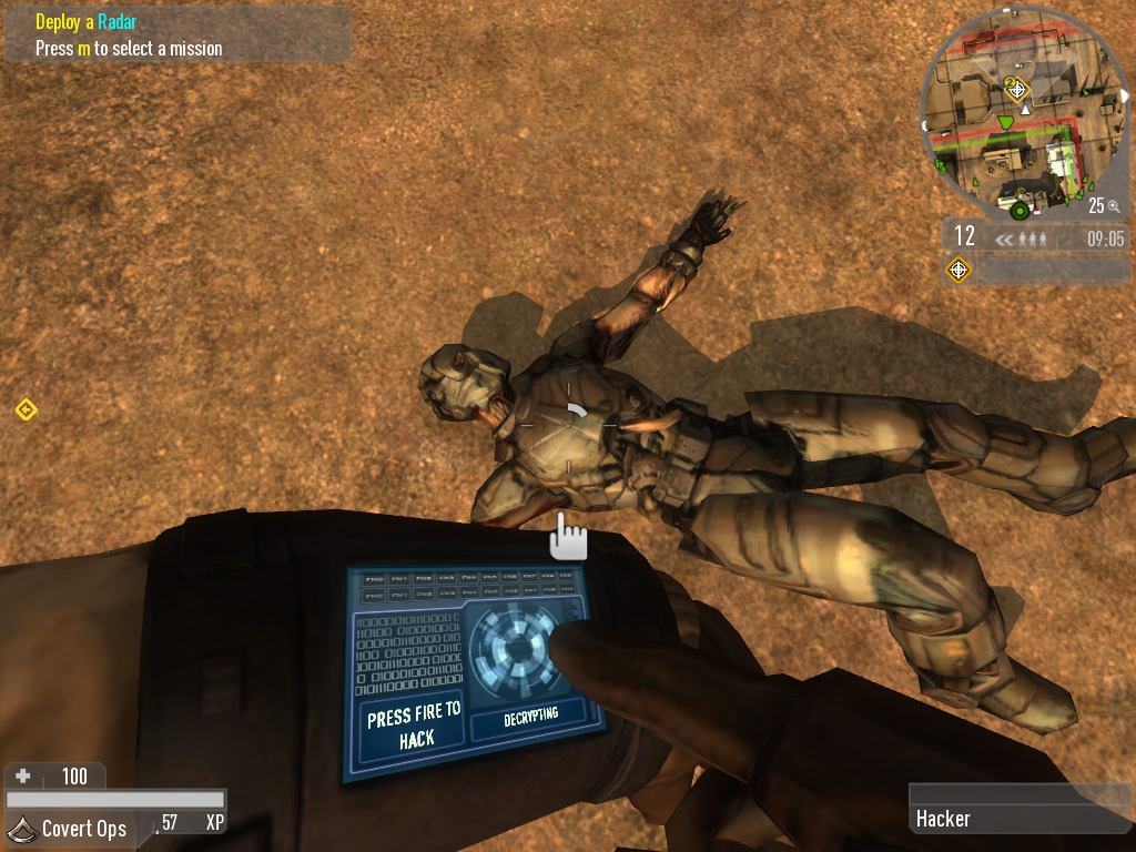 電子戦を担当するクラスで,もっとも重要な任務はオブジェクトのハッキングである。腕に取り付けられたPDAを使ってオブジェクトをハックし,その機能を無効化する。ハッキングによる無効化というミッションはETQWのマップの中でも数が多く,Covert Opsは戦場に必須の存在といえる。