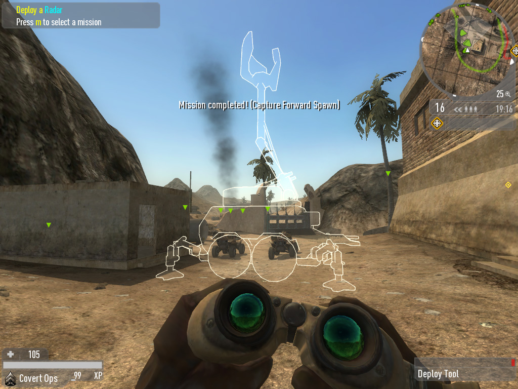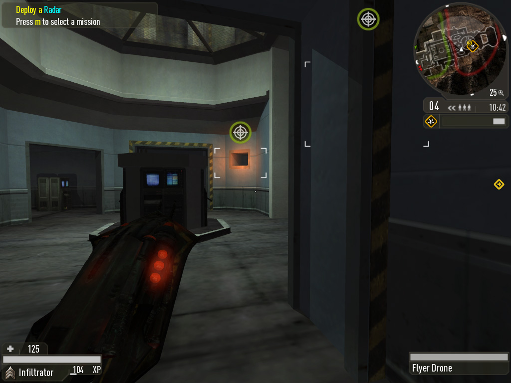 Remote Droneは「空飛ぶリモートカメラ」で,Infiltratorが手元のPDAで操作する。カメラを見ながら敵オブジェクト付近に誘導してリモートで爆破し,敵にダメージを与えられるのだ。Remote Droneを使用しないとObjectiveが達成できないマップもあり,Infiltratorの重要な技能の一つに位置づけられる。