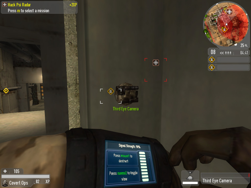 戦闘で重要なのはレーダー(室内には小型レーダーやThird Eye Camera)の設置だ。レーダーを設置すると,味方は敵の位置をマップ上で確認できるようになり,非常に有利になる。レーダーは建物の中でも有効範囲内ならば走査可能なので,敵に見つからない(敵に破壊されない)隠れた場所に設置するのがポイントだ。なお,小型レーダーは遠隔操作で爆破できる(腕に付けたPDAで行う)。