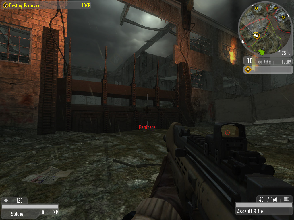 リスポーンポイント(GDFから見てバリケードの裏側にある)からバリケードに向かって移動してくるStroggを,バリケードの側面に回り込んで攻撃するのも効果がある。リスポーンして懸命に走ってくる最中のStrogg兵は,だいたい周囲をあまり警戒していないものなので,比較的簡単に倒せる。