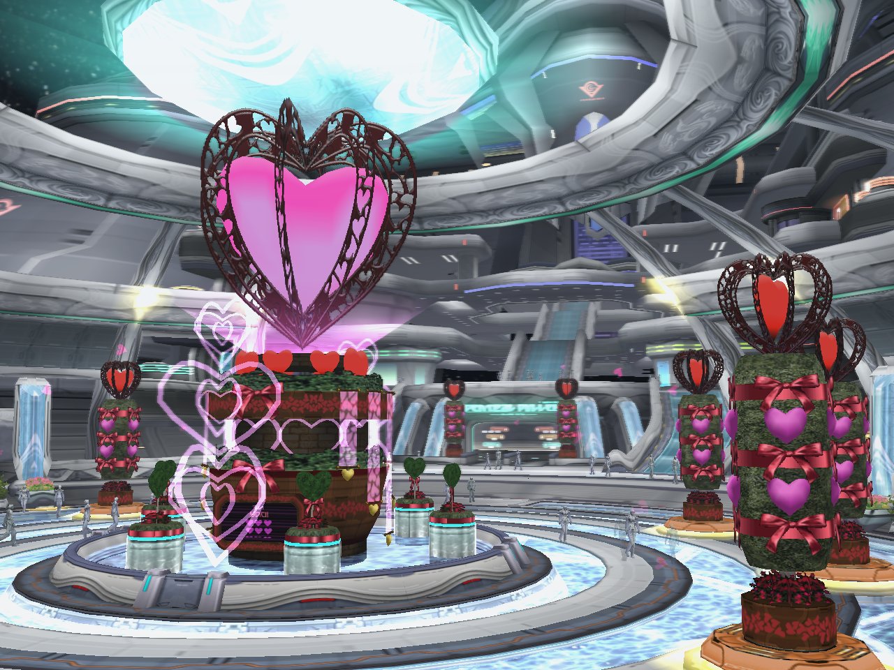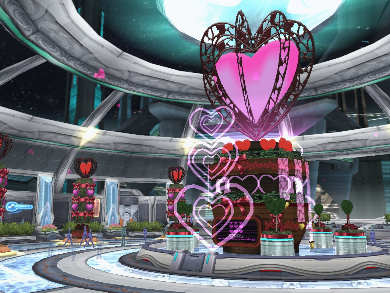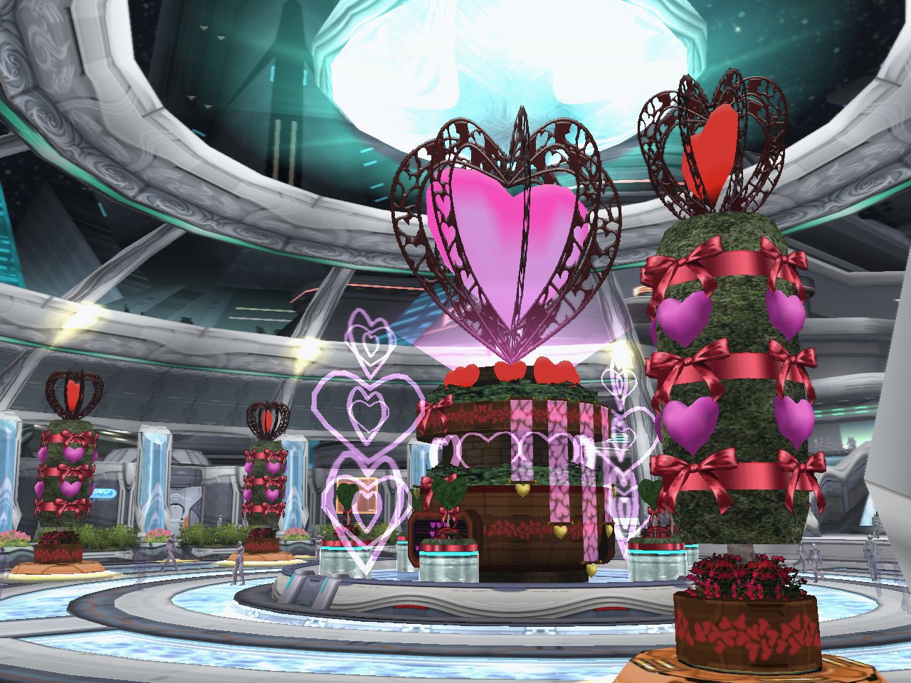 「PSU」バレンタインイベントでロビーがハートに囲まれた空間に