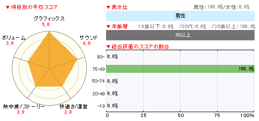グラフィックス サウンド 快適さ/運営 熱中度/ストーリー ボリューム 5 4 3 3 3