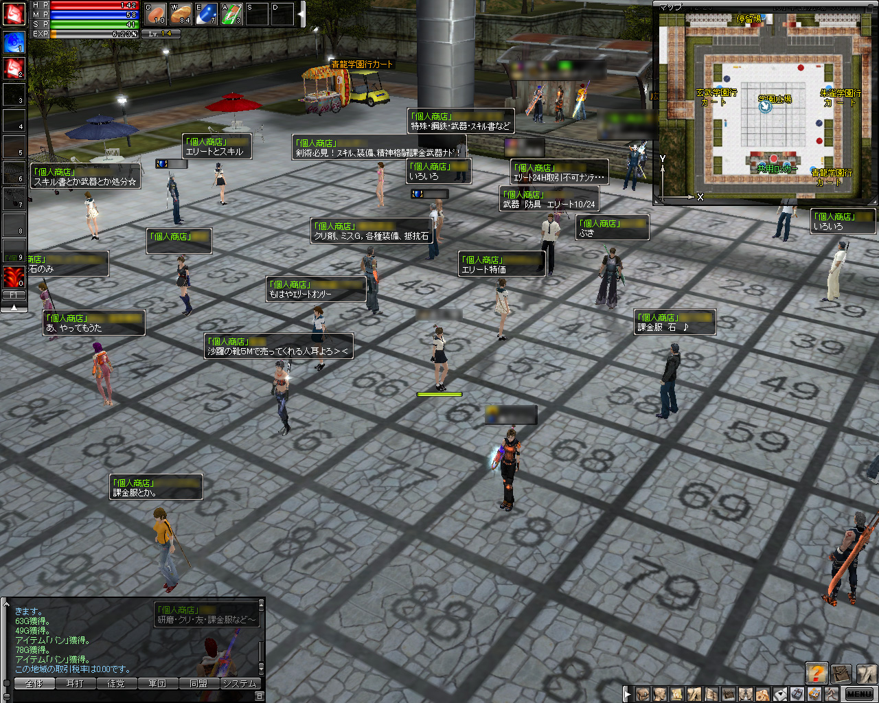 各学園などから直通で行ける「学園広場」には,プレイヤーの露店が並ぶ。手っ取り早くアイテムを入手するにはいいかも