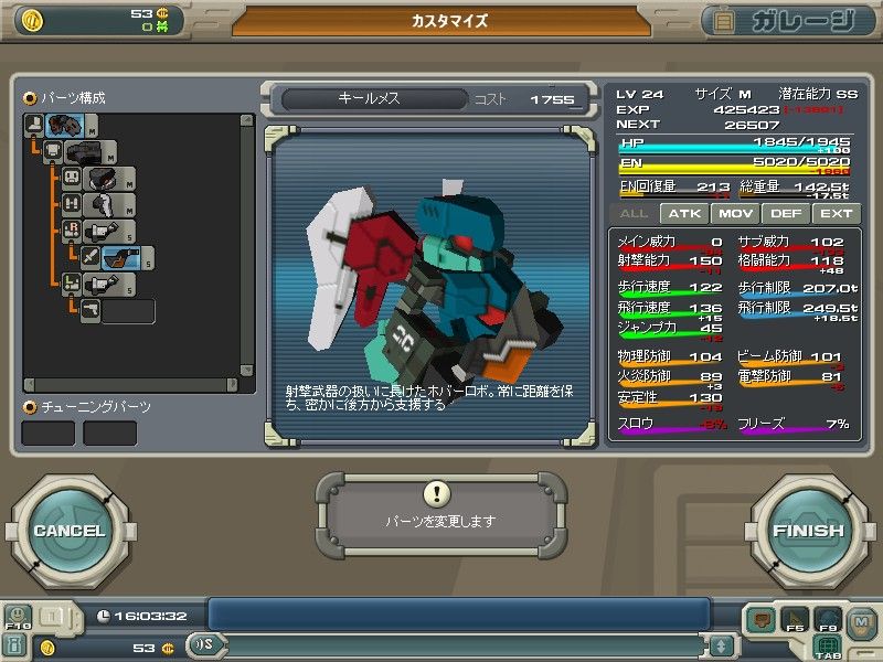 「鋼鉄戦記C21」,ガレージ機能を更新。ステータス増減が分かりやすく