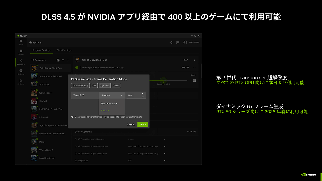 西川善司の3DGE:超解像&フレーム生成技術の最新版「DLSS 4.5」の仕組みと実力。2026年登場のゲームからネイティブ対応が始まる