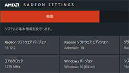 Radeon Settingsの画面自体は,現行のRadeon Software Adrenalin Edition(以下,Adrenalin Edition)とさほど変わっておらず,タイトルバーの右側に新機能のアイコンが追加されていることくらいの違いしかない。