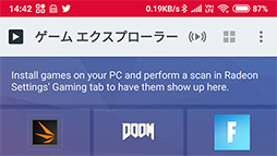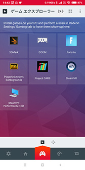 AMD Linkアプリで,画面下側にあるゲームパッド型のアイコンをタップすると「ゲーム エクスプローラー」が開く。そこには,Radeon Settings側の同名機能に登録されているインストール済みPCゲームのアイコンが並んでいた。