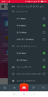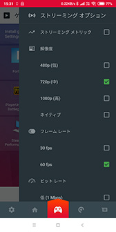 ゲーム エクスプローラーの右上にある,3つの点が縦に並んだアイコン(以下,メニューアイコン)をタップすると,ビットレートや画質の設定を行うメニューが出てくる。このメニューには多数の設定項目があるのだが,そのうち映像と音声の品質に関わる要素は以下のとおりだ。