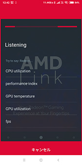 AMD Linkアプリのナビゲーションバー(※画面下に表示されているホームボタンなどが並ぶ領域)を長押しすると音声認識が起動して,パフォーマンスモニタの実行や録画操作,ストリーミングの操作など30種類のコマンドを音声で実行できるという。