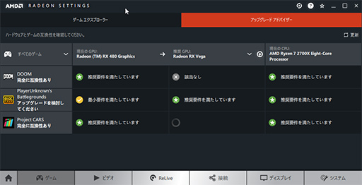 Radeon Settingsの各種アドバイザー機能で,快適なプレイの目安が分かりやすく