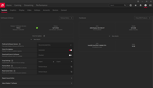 Radeon Software AppのHomeタブには,いくつもの新機能が加わっている。順に説明しよう。