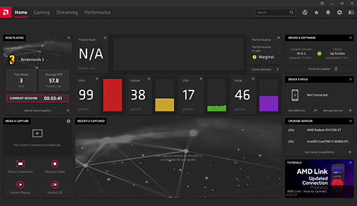 使用しているPCが十分なパフォーマンスを備えているかを表示したり,ドライバのバージョン確認と自動アップデートを備えた機能。後述するAMD LinkでスマートフォンとPCを接続すると,接続先スマートフォンの状態も確認できる。