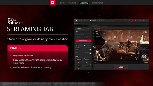 ストリーミング先のインタフェースは,新しいRadeon Software Appとデザインを統一しており,すべてのストリーミング機能へ簡単にアクセスできるよう,操作性の改善も行われているとのことだ。