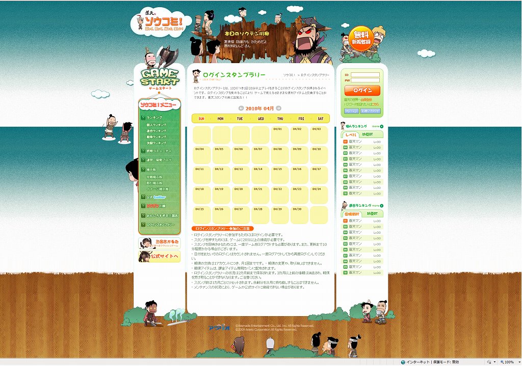 「蒼天」1日20分以上ログインでスタンプを集めて,アイテムをゲット
