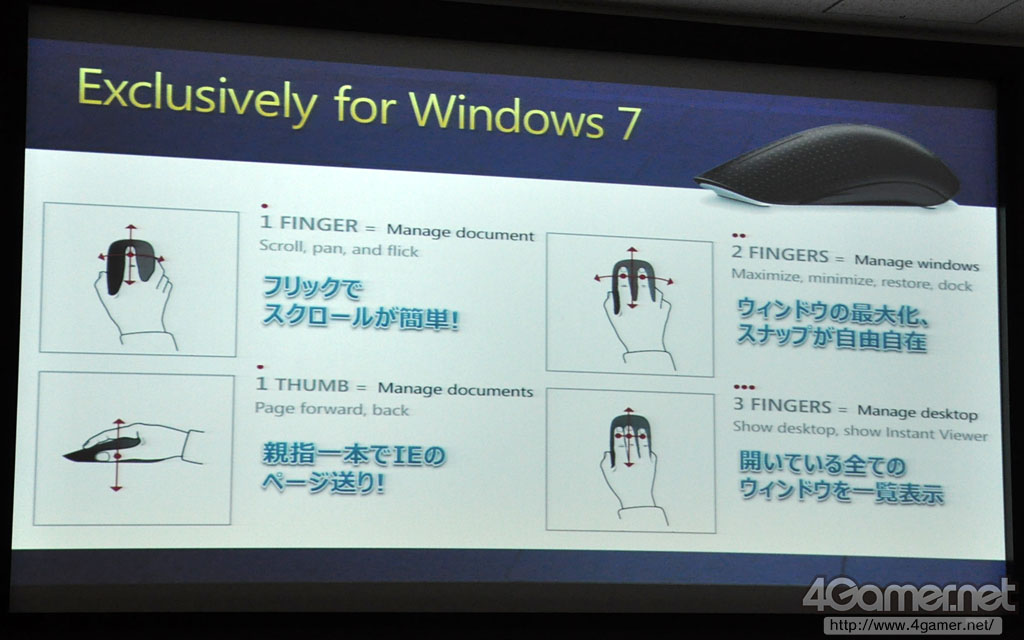 Microsoft,マルチタッチ対応のワイヤレスマウス「TOUCH MOUSE」を発表。9月2日発売