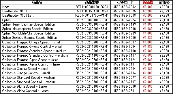 MSY,Razerの「DeathAdder 3500」「Naga」など全20製品を値下げ