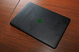 Razerロゴ入り天板。動作中はロゴが緑色に光るギミック付きだ
