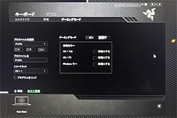 | プリインストールされていたSynapse 2.0。[Windows]キーと[Fn]キー以外の全キーがカスタマイズ可能だった(左)。[Windows]キーや[Alt]+[F4]キーの無効化機能もある |