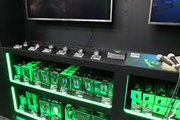 奥側右の壁には,各種のRazer製マウス(左)とマウスパッド(右)が並んでいた