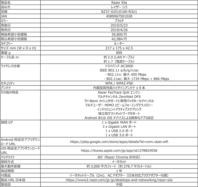 RazerのIEEE 802.11ac対応ゲーマー向け無線LANルーター「Sila」が秋葉原RAZERSTOREで販売中