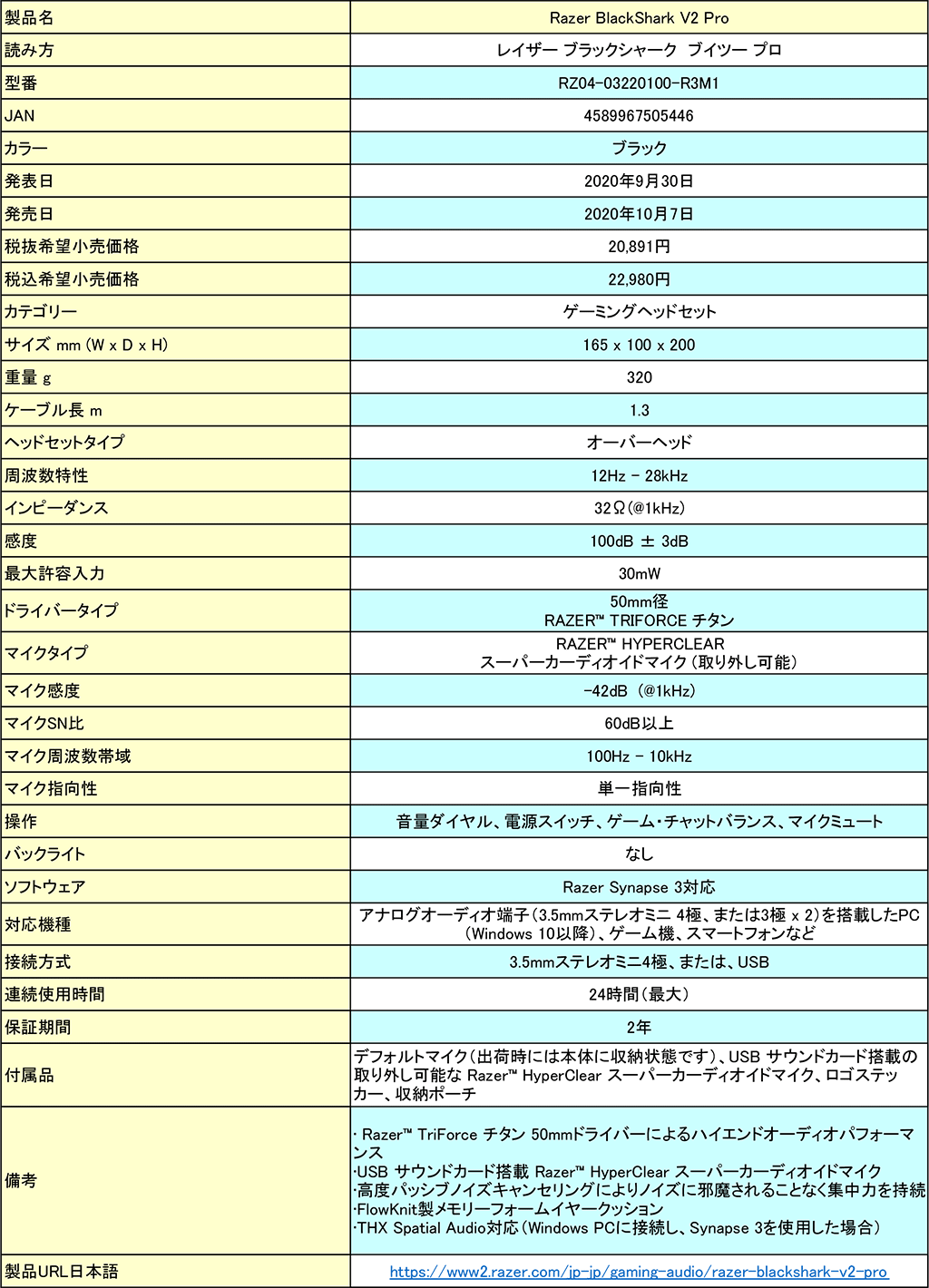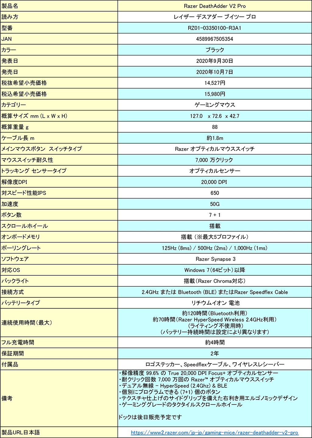 Razer,「DeathAdder V2 Pro」と「BlackShark V2 Pro」を10月7日に国内発売。低遅延ワイヤレス技術「HyperSpeed」に対応