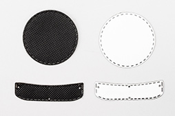製品ボックスに付属するフィルター(左)。外側は黒,内側(顔に向ける側)は白になっている(右)
