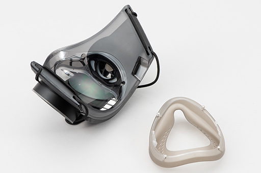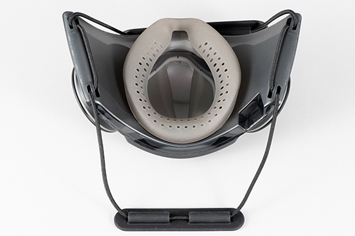 マスクの内側。灰色の部品が顔に触れる部分だ