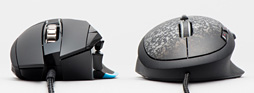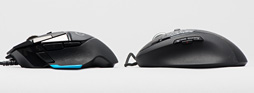 従来製品であるG500sとの比較でいうと,Logitech/ロジクールは同じようなシルエット,同じような握り心地になるよう苦心した跡は見られるものの,実際の印象は大きく異なる。サイドボタンの大きさはもちろんのこと,全体的にボタンの配置場所が変わったことが,この印象の大きな要因になっていると述べていいだろう。少なくとも,G500s以前の“5系”マウスを使っていた人が,G502に乗り換えて,何の違和感もなく使えるかというと,正直怪しい。
