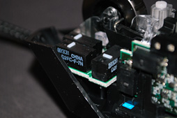 ![]() オムロン製スイッチの型番は定番の「D2FC-F-7N」だった。G500sの「D2FC-F-7N(20M)」とは少し異なるが,製品スペックとして「2000万回の押下に耐える」とされている点は変わらない |