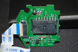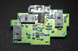 最後に分解である。G502の分解は少々難儀したというか,「底面部のマウスソールを剥がし,4本あるネジを取り外す」だけではダメで,微妙な力加減で押したりしなければならなかった。ともあれ,下に示したのが上面カバーを取り外した状態と,そこでメイン基板に寄ったところだ。