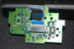 メイン基板からは,サイドボタンスイッチが搭載されたサブ基板,そしてセンサーユニットの搭載されたサブ基板へのフラットケーブルが伸びている。