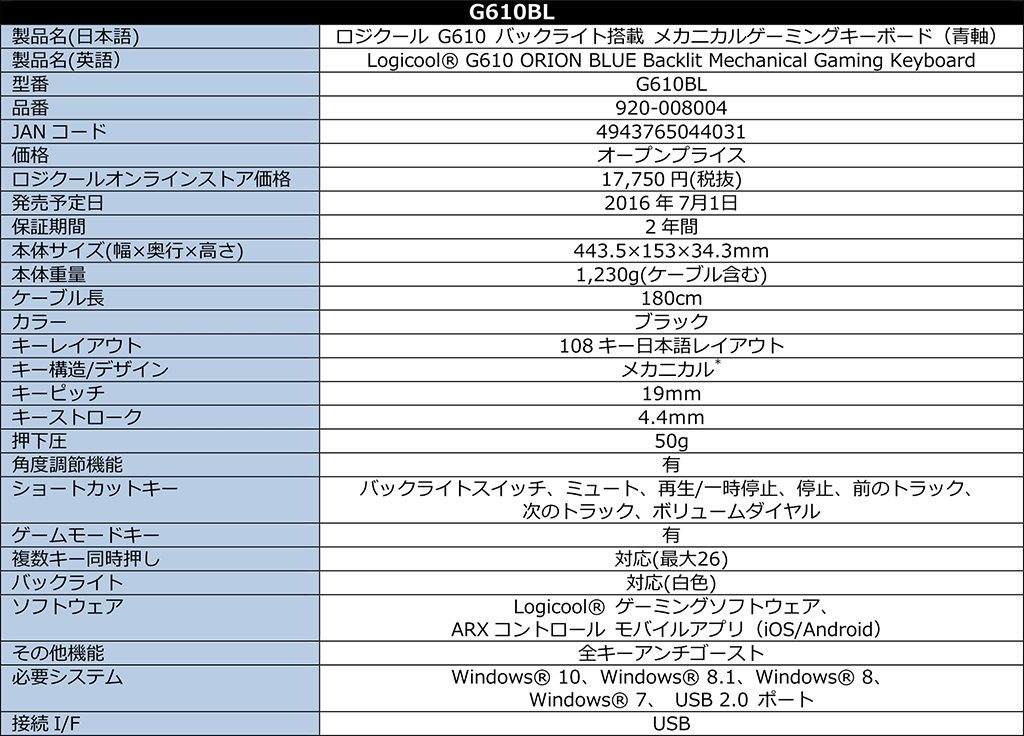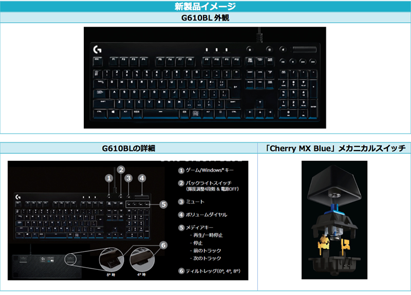 Logicool G,G610シリーズに“Cherry青軸”搭載モデル「G610BL」を追加。税込価格は“Cherry茶軸”モデルと同じ1万9000円強
