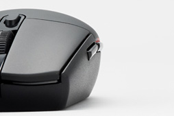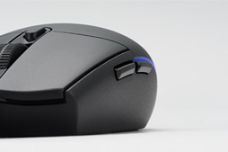 なお,サイドボタンの実測サイズは前後方向に4mm,縦方向に16.5mmという長さで,筐体からは約2mmほど突き出ている。ボタンの押し心地はスクロールホイール手前ボタンと変わらない印象だ。