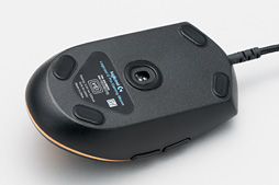 スクロールホイール部のLEDも外すなど,軽量化を頑張ったのだろうなあと思わせる一方で,本体後方部のLEDには,明らかな「光をキレイに回すための配慮」が見られる。ここを削ればもっと軽くできるのではないかとも思うが,やはり2017年のハイスペックマウスとしては見栄えも重要だということなのだろうか。