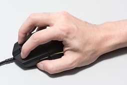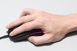前段でも触れたとおり,Pro Gaming Mouseの両側面にある凹凸の滑り止め効果はあまりない。そのため,「滑らず持てるか」が,Pro Gaming Mouseを使いこなすにあたってはカギとなるだろう。個人的には,指を立てて持つ感じでグリップするつまみ持ちとBRZRK持ちは,多くの人にとってグリップしづらい持ち方ではないかと考えている。