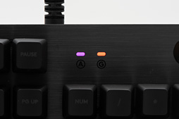| 本体に搭載するLEDインジケータはCaps LockとGame Modeのみ。ちなみにLEDの色は個別にカスタマイズ可能だ |