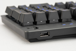 コアなゲーマーはこの問題を解決するため,専用のケーブルアンカー(ケーブルホルダー,マウスバンジーなどとも言う)を用いたり,ケーブルの上に錘を置いたりして対策するのだが,キーボードの正面向かって右奥にUSBポートがあれば,その対策が容易になるわけである。