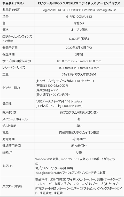 ロジクールの軽量ハイエンドマウス「PRO X SUPERLIGHT」にマゼンダのカラーバリエーションが登場