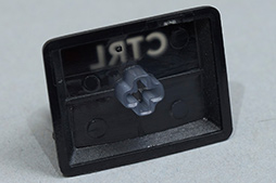 次の写真にあるとおり,左[Shift」キーと[Enter]キー,[Space]キーの3つは,押下時の打鍵感を均一化するために,補助が追加されていた。利用頻度の高いキーであるので,妥当な選択といえるだろう。